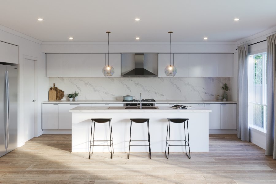 Customers can personalise the standard Toorak floorplan with any of our pre-designed options, including butler’s pantry, guest bedroom, extra ensuite and rear balcony. And they can also choose from nine Boutique façade options, including the Hamptons, Manor and Nova.