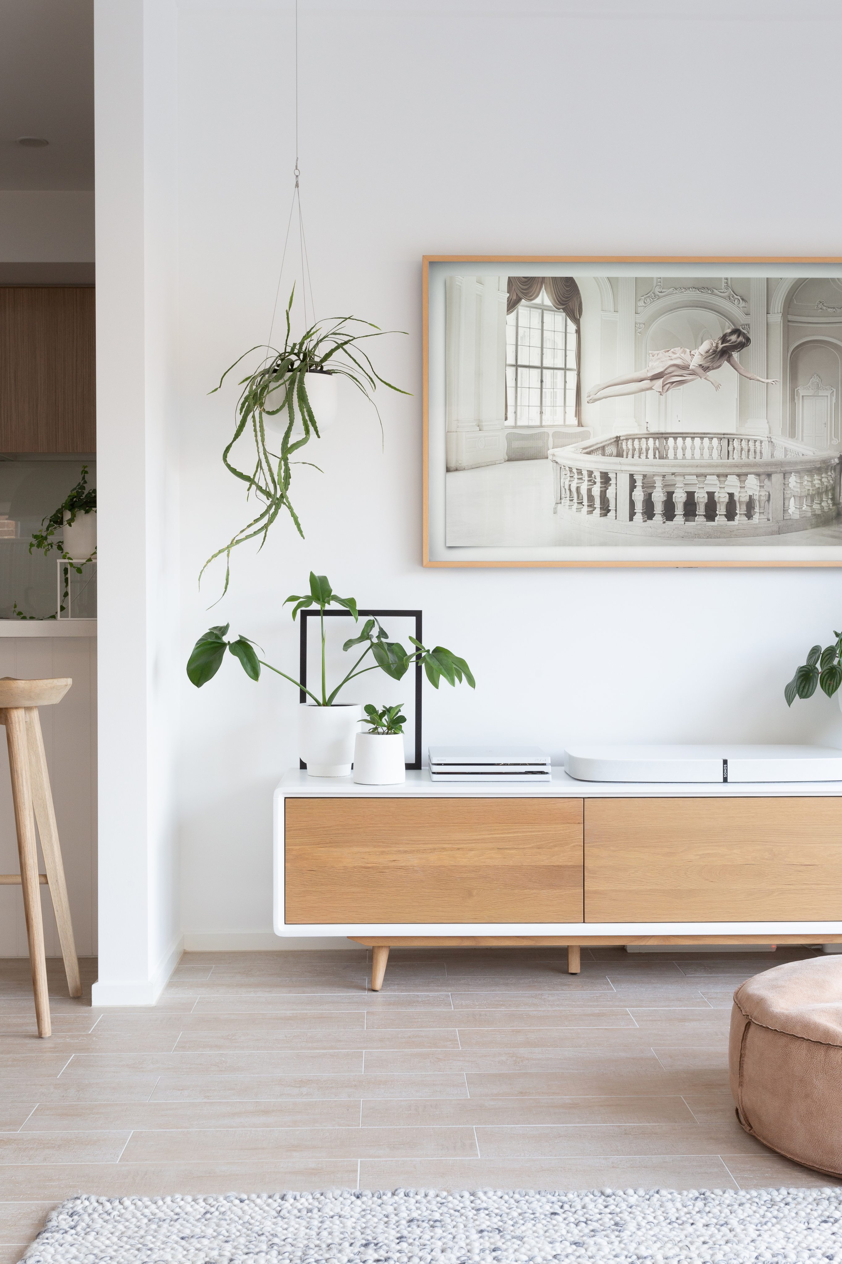 The pair chose the practical and liveable Barcelona home design - a canvas they could use to paint their creative mark as a couple. 'We wanted a floorplan that was modest yet had an element of grandeur and openness and was drenched in natural light,' explains Az. 'We ensured that the orientation of our lot would take full advantage of the course of the sun.' Once the foundations were laid, Jamie and Az went about styling a ‘feel’ rather than a look through their interiors, opting for calm, relaxed and inspired sensations that are evoked by cream-meets-neutral colour tones. 'By focusing on using materials that are raw, organic and full of texture and character, we add an element of depth and interest to our selections,' says Az.