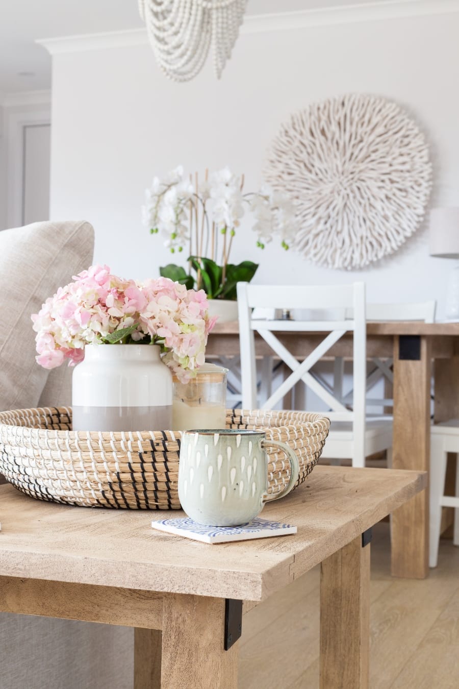 Chantelle and Tom’s home is awash with beautiful neutral and coastal tones helping to create a relaxed and tranquil space. They styled the interiors with beachy elements, timbers and textured throws to create interest and complexity. While the foundations for a beautiful aesthetic have been laid, their final home is still a work in progress and is constantly evolving thanks to inspirations they have collected while travelling as well as the Boutique Homes Instagram community. 'Documenting our build journey on Instagram @daydreambelievers_ has really helped develop the overall feel of our home and scoping other Boutique builds has helped us immensely with choosing colours,' says Chantelle.