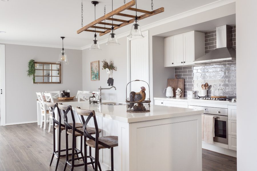 Mike and Sam have developed a unique style for their interiors, combining the quaintness of farmhouse and country with rustic elements. Their colour palette features a mix of browns, off-whites and beige, coupled with the considered use of timbers.