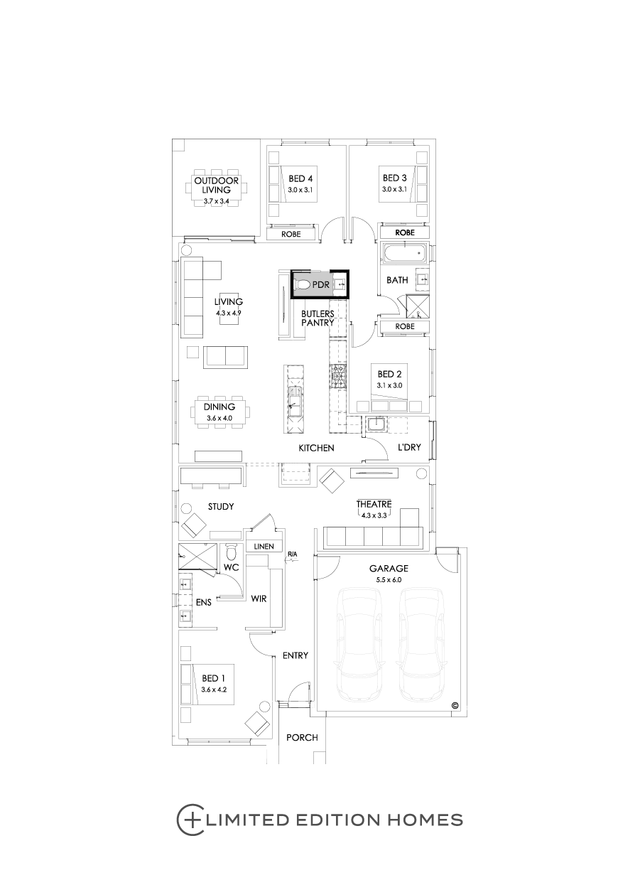 Images are indicative only and may depict upgraded fixtures, finishes, features and landscaping such as upgraded front door, marble benchtops, waterfall bench ends or upgraded Caesarstone, timber bi-fold or sliding doors, planter boxes, fencing, barbecues and fireplaces not included in standard pricing specified. Limited Edition Homes have additional upgrades that are not reflected. For detailed pricing and information regarding our standard inclusions, please speak to a New Homes Consultant. Boutique Homes reserves the right to alter products and brands included without notice for items of similar value and quality.